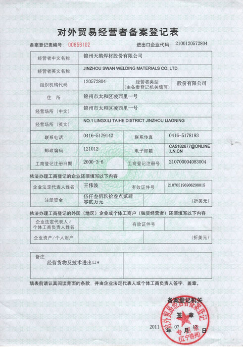 Welcome to the Jinzhou Swan Welding Consumables Co.,Ltd official website
