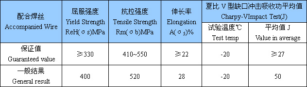 熔敷金屬力學性能:(按GB/T5293配合JH-SJ501)